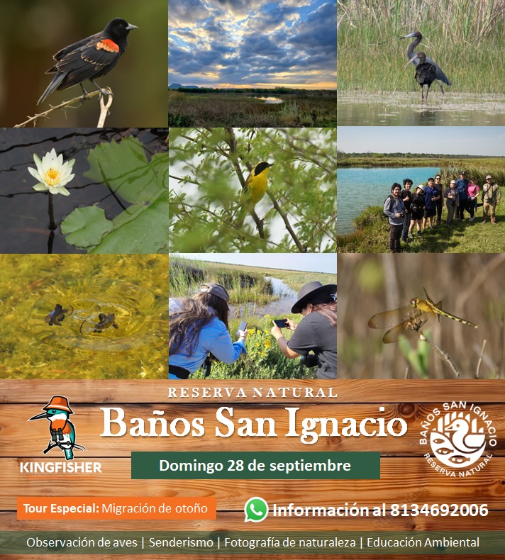 Próxima visita guiada con nuestros amigos de Kingfisher Birdwatching Nuevo León a la Reserva Natural Baños San Ignacio. Observación de aves, Senderismo, Fotografía de naturaleza, Educación ambiental, y más...